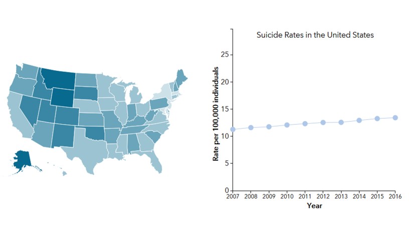 The American Foundation for Suicide Prevention provides the data since 2007: